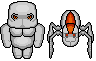 Lastly you need to use more interesting colors! Instead of just a flat palette that goes from light gray to dark gray why not make your base color gray, then the shadow color a slightly darker bluish gray, and then a violet outline? It'd give the sprite a nice, cool color scheme that'd look really nice ^_^