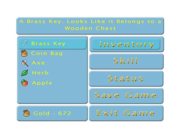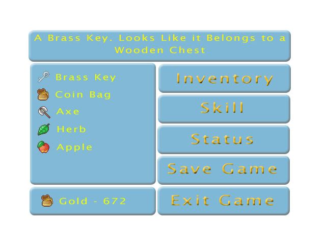 As you can see, everything looks like that and depending on what the option is (Inventory, Skill, Exit game, Etc) that menu will appear to the left of it (where the Inventory Items are in the picture)