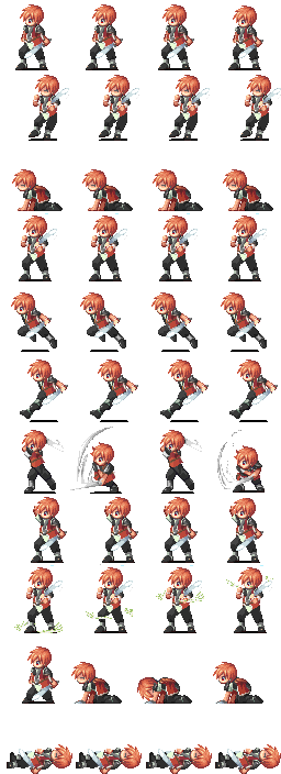 8 Skills: He stands up straight and stabs his sword into the ground. (For melee skills he charges like in Moveto)