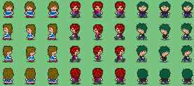 These are sprites of the three main characters that are going to be in my continuation of the Mother series. They're using EarthBound's style - so I need to know if there is anything I should improve in my work. Please comment.